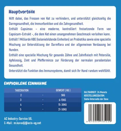 Entwickelt zur natürlichen Reduktion von unerwünschtem Fressverhalten bei Hunden